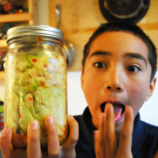 When I was searching through my photos of kimchi, I came across these photos of R with a jar that he made. That kid loves his kimchi - especially on burgers - and we always had a jar in the fridge for him.