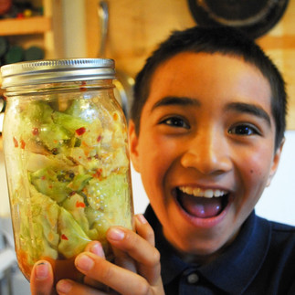 Two pluses: you can use cabbage that's a little past its prime - it's a good use for cruciferous veggies that may have languished a little too long in the veggie bin - and it's super fast - it's ready in less than a week! So, on the off chance that they eat the last of a jar without letting me know, they'll only be without for a week.