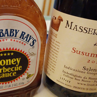 In preparation for February's #ItalianFoodWineTravel event, I opened a few bottles of wine from Puglia, including a completely new-to-me variety called Susumaniello. I brought it to a dinner when friends invited us over for smoked ribs.