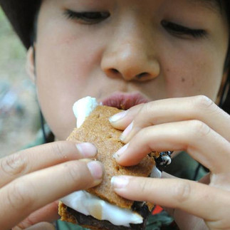 Toast marshmallows - or not. Roll marshmallows in chocolate. Dip in graham crackers. Eat immediately.